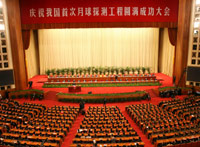 Beijing held a grand ceremony at the Great Hall of the People Wednesday morning to celebrate the success of the first stage of China's lunar probe program. President Hu Jintao delivered a speech at the assembly. Wu Bangguo, chairman of the Standing Committee of the National People's Congress, the top legislature, presided over the meeting.