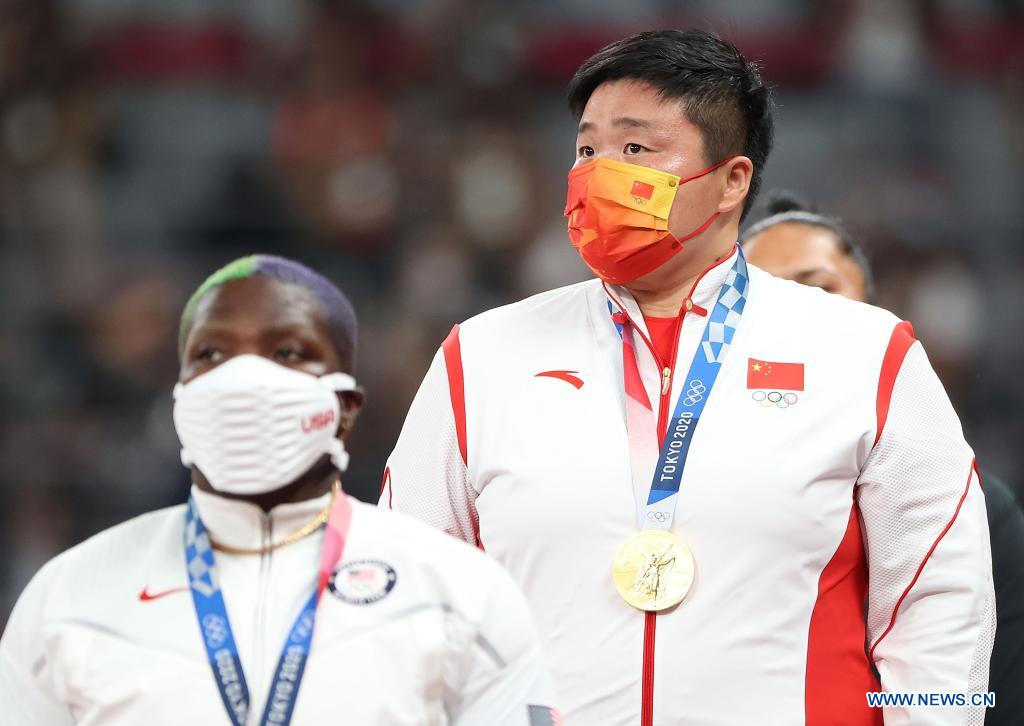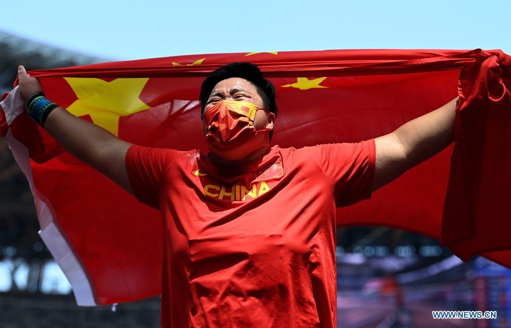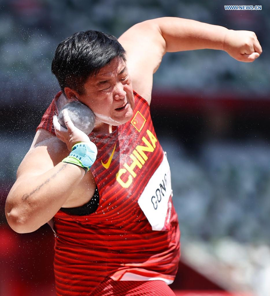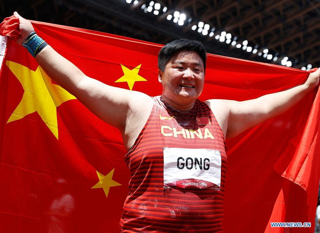 TOKYO, Aug. 1 (Xinhua) -- China's Gong Lijiao dominated in women's shot put at Tokyo Olympics on Sunday, winning her first Olympic gold medal. The victory marked China's first Olympic gold in field events.