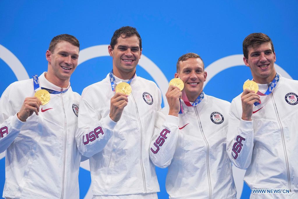 TOKYO, Aug. 1 (Xinhua) -- The United States broke its own world record to win the last swimming gold in Tokyo from the men's 4x100m medley relay as the swimming competitions concluded here on Sunday.