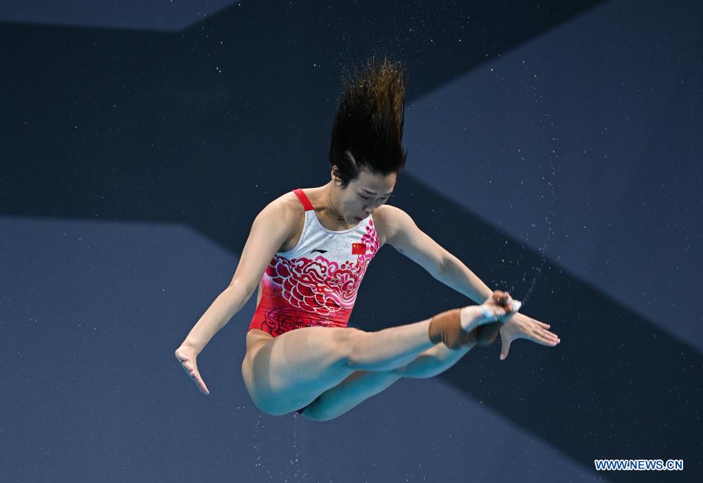 Shi Tingmao of China competes during the women's 3m springboard final of diving at Tokyo 2020 Olympic Games in Tokyo, Japan, Aug. 1, 2021. (Xinhua/Wang Jingqiang)