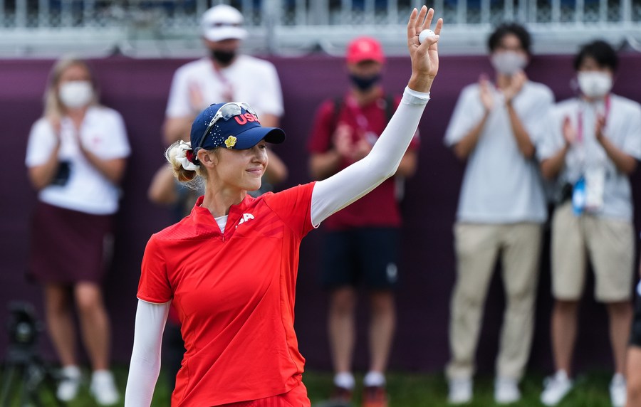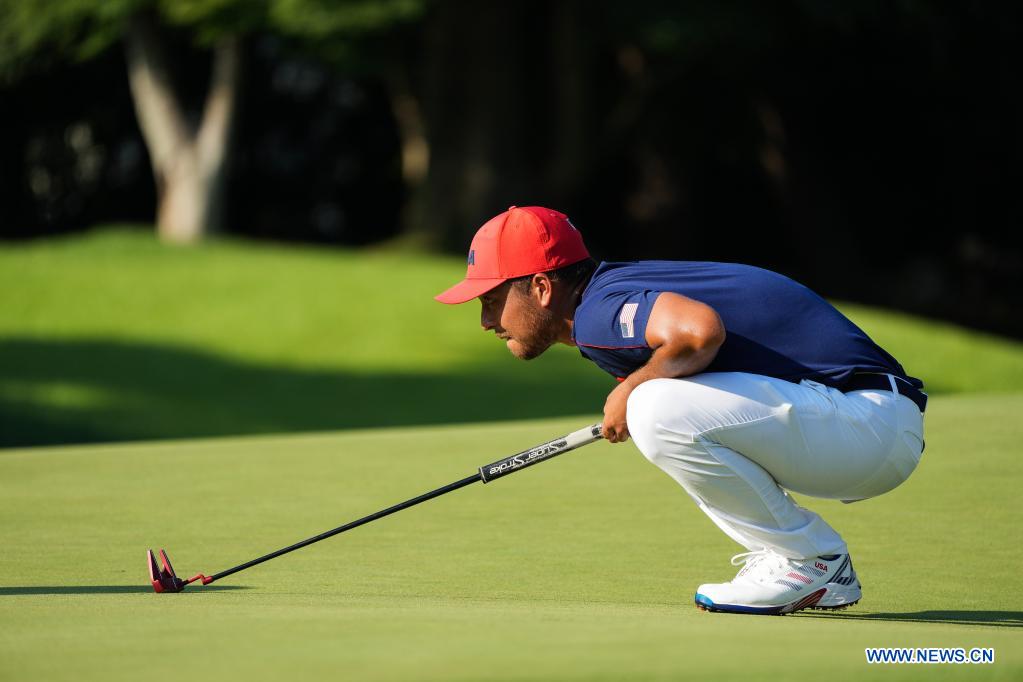 Xander Schauffele of the United States competes during the men's individual stroke play round 4 golf match at Tokyo 2020 Olympics in Saitama, Japan, Aug. 1, 2021. (Xinhua/Liu Dawei)