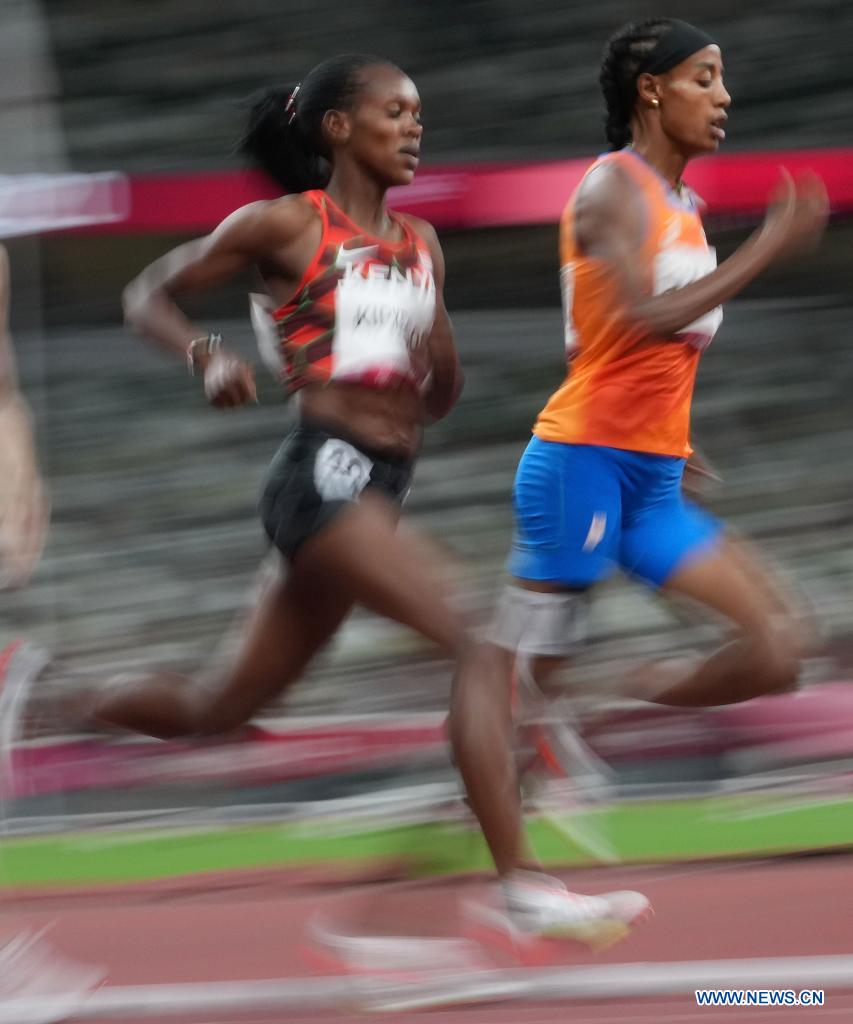 Wang Chunyu (front) of China competes during the women's 800m semi-final at the Tokyo 2020 Olympic Games in Tokyo, Japan, July 31, 2021. (Xinhua/Wang Lili)
