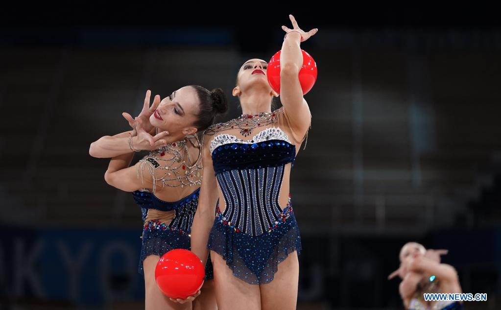Kseniia Makeeva (2nd L) of ROC competes during the women's handball gold medal match between France and ROC at Tokyo 2020 Olympic Games in Tokyo, Japan, Aug 8, 2021. (Xinhua/Huang Zongzhi)