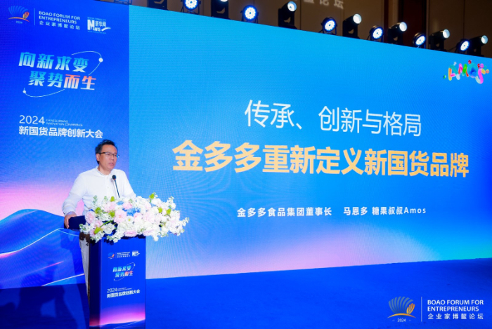金多多食品集团董事长马恩多发布《传承、创新与格局——金多多重新定义新国货品牌》主题分享,他从多个角度向大家介绍了金多多品牌的发展历程与产业布局。他总结道:“创新是能够助力国货崛起的关键点。”