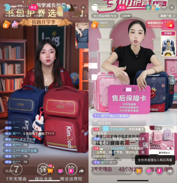 这个暑假,护脊书包再次迎来购买高峰,品牌纷纷在电商平台开启直播带货。其中,“容量大”“减轻负担”“护脊减负”“立体回弹”“承重力强”等是常见的产品宣传卖点。