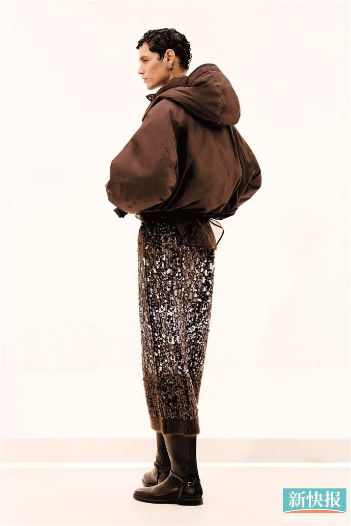 妆容方面也可配合流光质感,用通透底妆与大地色系打底,融入亮色点缀或细闪轻扫,模拟秋日光影在肌肤上的流动,让整体造型产生某种奇妙化学反应,打破沉闷,赋予整体造型别样光感与活力。(记者 梁彧)