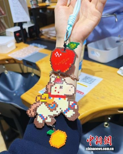 图为拼豆爱好者展示制作好的拼豆。中新网记者 于晶 摄