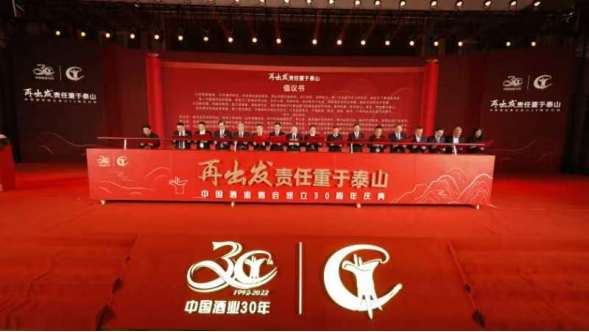 在“中国酒业协会30周年庆典”活动中,特设“流金岁月”重点环节,通过忆往昔、看今朝、向未来三个段落,深情回顾30年来中国酒业的发展历程,分析当前中国酒业的发展情况,展望未来中国酒业发展的美好画卷。在《再出发·责任重于泰山》倡议书发布环节,“中国酒业再出发”仪式启动,18位酒企代表、酒业专家等在中国酒业协会理事长宋书玉的带领下共同宣读了倡议书,并见证“中国酒业再出发”启动仪式。