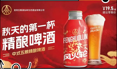 无独有偶。宜宾五粮液仙林生态酒业有限公司发布消息,将于8月15日正式上市一款中式五粮精酿啤酒,命名“风火轮”,单罐净含量390ml,建议零售价19.5元/罐。