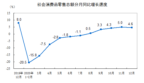 根據第四次全國經濟普查結果對2019年社會消費品零售總額進行了修訂,2020年月度增速按照可比口徑計算。