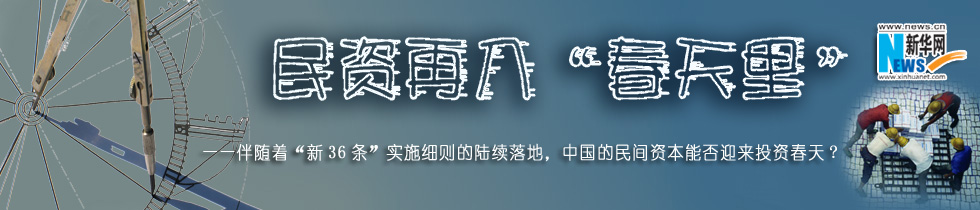 吸納民間資本的政策要真正落實,還有諸多環節上艱巨、細致的工作在等著相關部門。 [詳細]