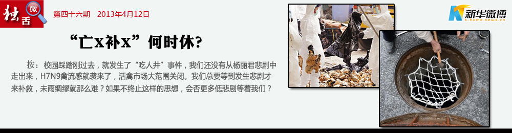人命的代價,太重 古有亡羊補牢今有"亡"人補井,如果說亡羊補牢是古人的智慧的話,那今天亡"人"補井是某些人對自己不作為的一種補救。莫非事事都要等出了人命才去重視嗎?可一出人命,馬上就付諸行動。莫非做什么事情都要付出生命的代價嗎?