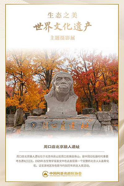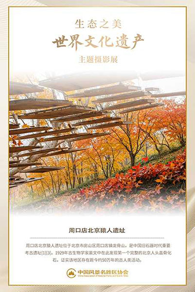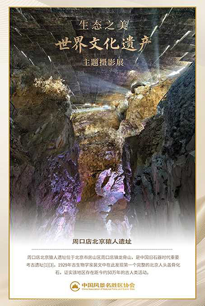 作者持续聚焦世界遗产题材逾三十载,始终秉持“以影像传递生态理念”的创作宗旨。本次展出作品融合商业摄影的精致语言与公益传播的社会使命,构建出兼具视觉张力与思想深度的影像叙事。其中,国家级风景名胜区《北京周口店猿人遗址》系列尤为突出,镜头巧妙捕捉岩层肌理、考古现场与自然生境之间的对话,不仅再现了“人类远古家园”的地质奇观与文明印记,更以影像修辞深化“古今共生”的遗产保护哲学,引导观众凝视时间纵深中自然与人文的绵延共振。
