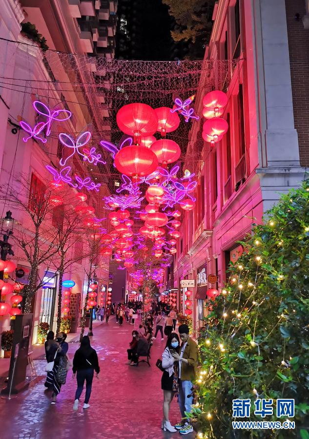 家住沙田的唐太也出現在利東街。她身穿繡上鮮紅花朵的衣裙,格外喜慶?!奥犝f利東街布置很漂亮,所以特意過來看看?!彼f,丈夫是攝影愛好者,他們因疫情取消了拜年活動,改為到一些地方拍照,感受過節氣氛。