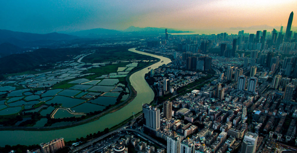 無人機拍攝的深圳和香港落馬洲河套地區及周邊風光(2018年5月23日攝)。新華社記者 毛思倩 攝