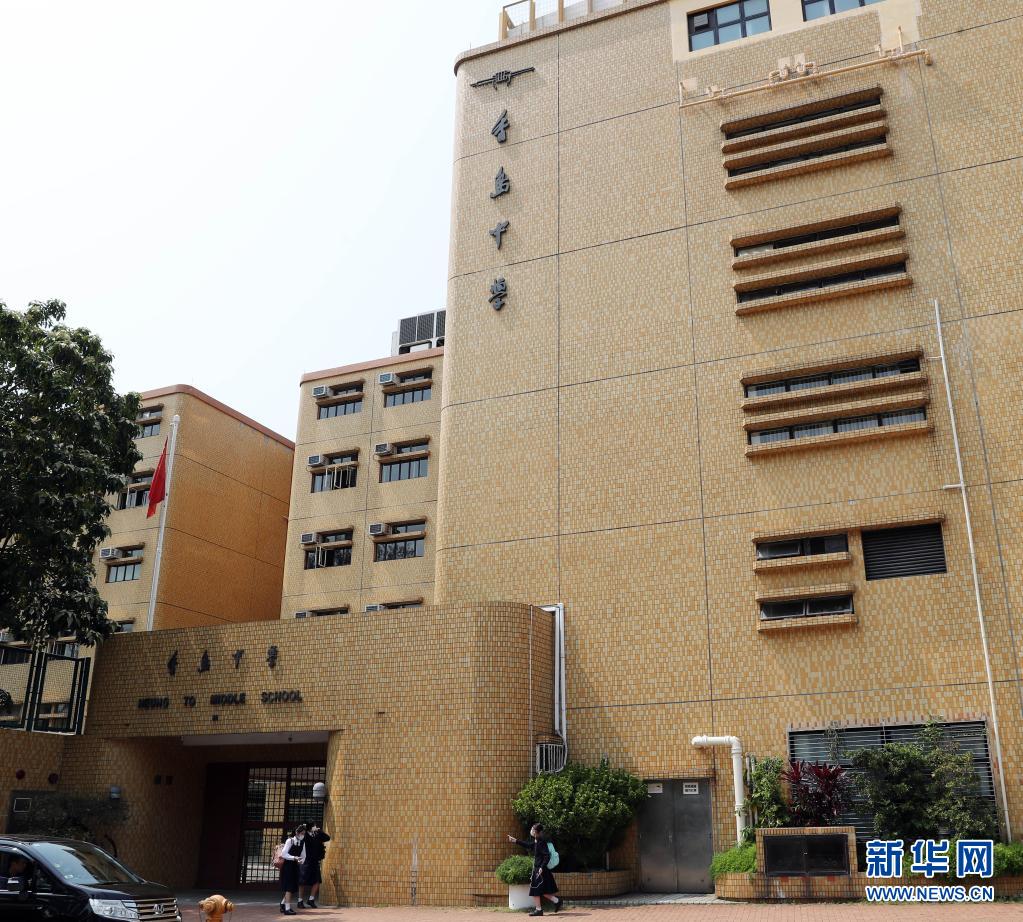 這是香港香島中學的校門口(3月16日攝)。新華社記者 李鋼 攝