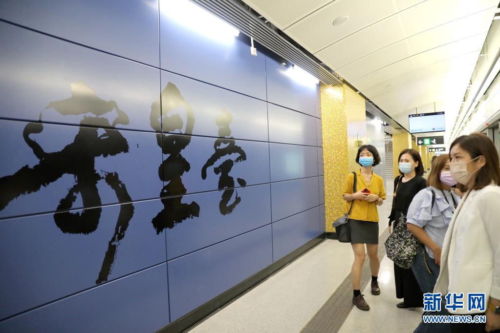 用傳統書法演繹的地鐵站站名“宋皇臺”(7月6日攝)。新華社記者 吳曉初 攝