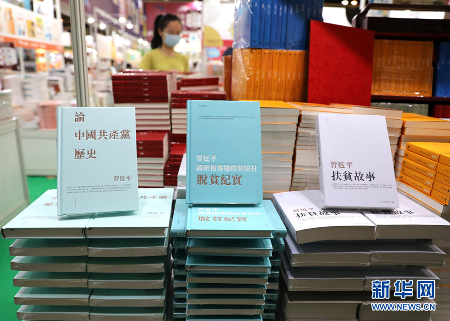 這是聯合出版(集團)有限公司在2021年香港書展上將三部著作中文繁體版作為集團年度重點圖書進行推廣(7月14日攝)。新華社記者 吳曉初 攝