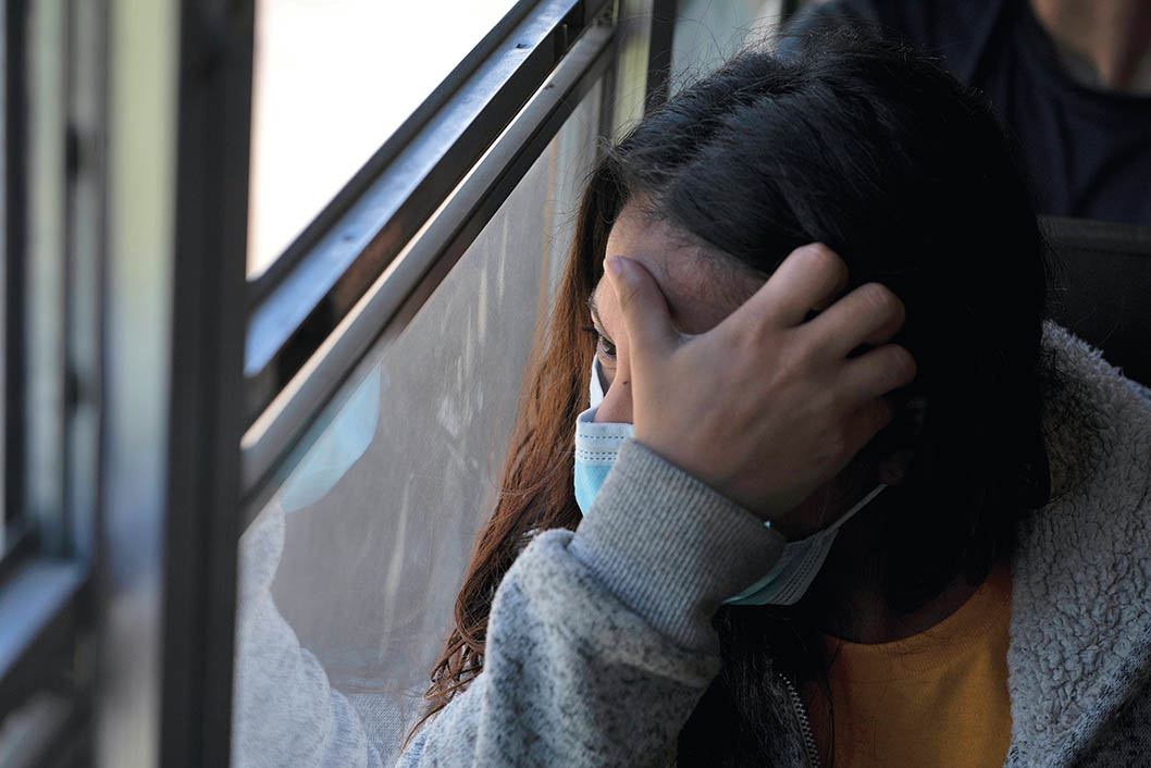 援助中心门外,一名中年妇女背着两个塞满衣物的黑色双肩包,走上停在门口的中巴车,车上已近满员。援助中心的车辆可将移民送至车站,也有人选择步行离开。外面的家属等待区只有5个人,身穿深色衣物的他们,神情落寞。门口,一名工作人员手里抓着一大把黑色鞋带——所有移民的鞋带在被拘留前已被取走。