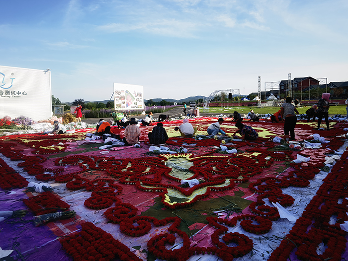鋪設(shè)花毯正繁忙(李雪芹 攝)
