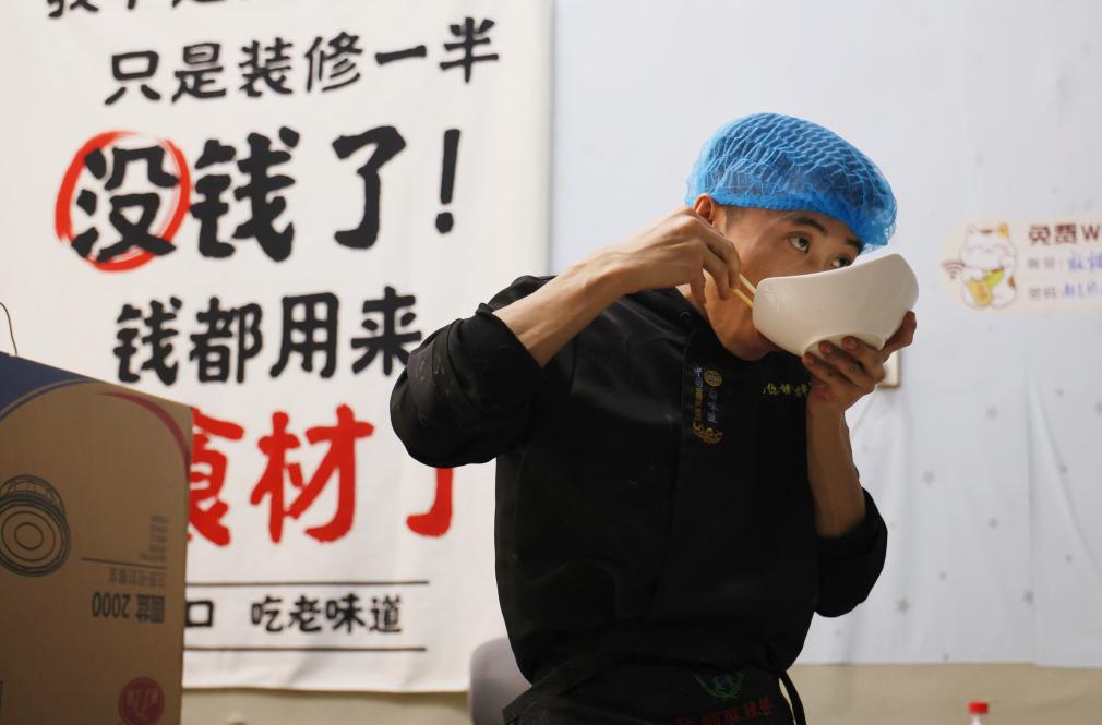 店长赵磊走起路来有些特别,因为多年前的一场意外致使他右腿截肢成了残疾人。靠着积极的心态和做麻辣拌的手艺,他咬牙撑起了自己的小店与生活。