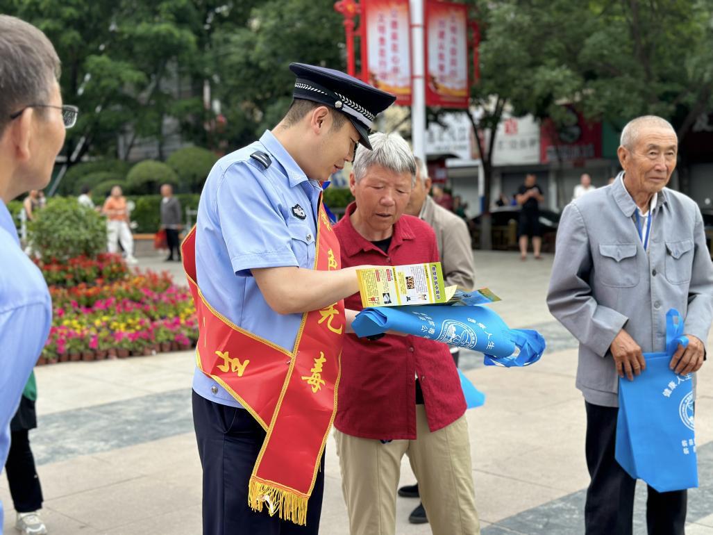 图为郭胜在为群众进行禁毒知识科普。 临县公安局供图