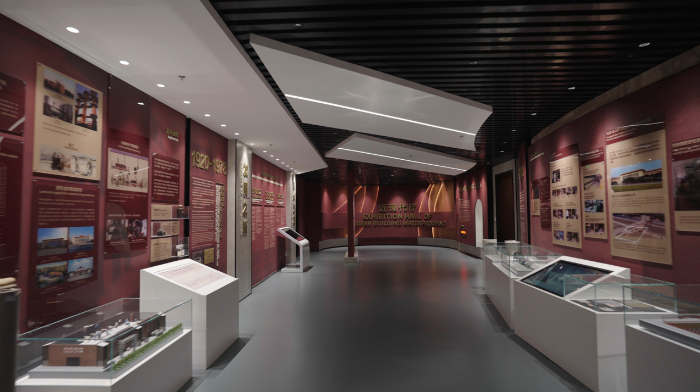 中国防水博物馆的近现代展厅通过百年足迹、发展之路、行业映像三大版块,以时间发展为轴、以建筑防水产品为主线,辅以现代化科技展示方式,集行业历史演进、防水机理科普于一体,将我国近现代建筑防水事业近百年发展历史浓缩于一方天地。