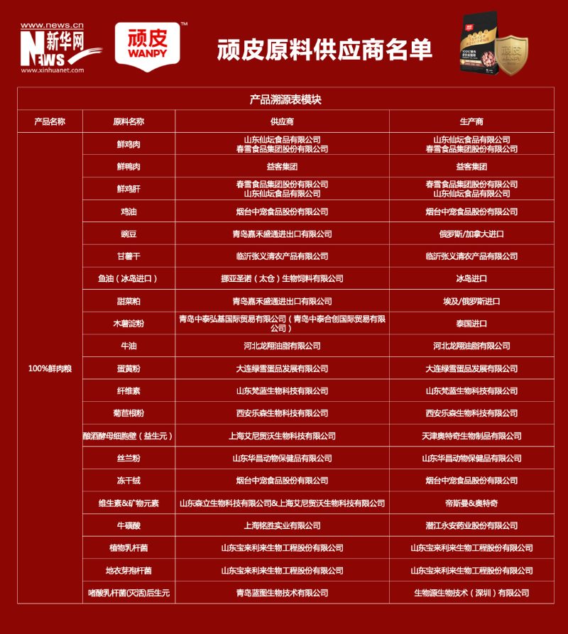 原料作为高品质猫粮的基础,顽皮对标全球最高标准,透明公示所有原料溯源,其核心原料均与国内相关行业上市企业合作,做到原料全程透明可追溯。