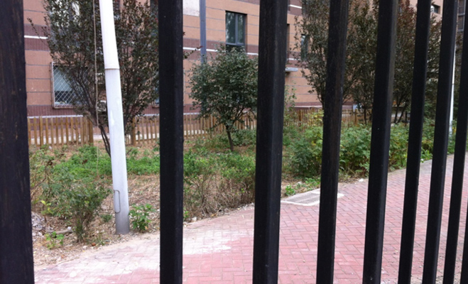 小區實現了人車分流,設有門禁,業主需要刷卡進入,門口有保安進行巡邏。不過還是有很多車輛亂停在小區北側的空地上,記者發現小區地下停車庫外墻壁的表面水泥已經脫落。小區外圍柵欄墻皮也逐漸脫落。