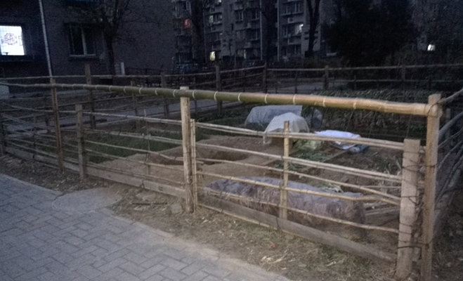 小區(qū)內(nèi)的公共綠地被嚴重侵占。許多公共綠地被業(yè)主開辟為私家菜地,種植了各種蔬菜,用柵欄進行了隔離,甚至有業(yè)主布設(shè)了大棚。據(jù)保安反映,城管曾要求業(yè)主恢復(fù)過去的綠地,但未見收到任何效果。
