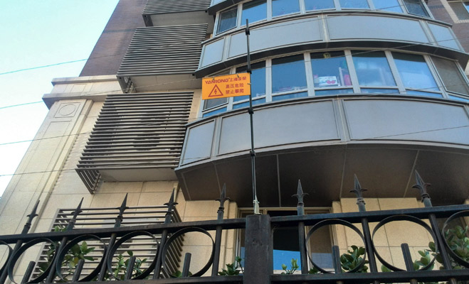 小區四周的圍墻上全部拉有電網,業主稱小區有保安會24小時巡視。巡視范圍不僅是室外空間,而且涵蓋小區各棟樓的各個樓層。