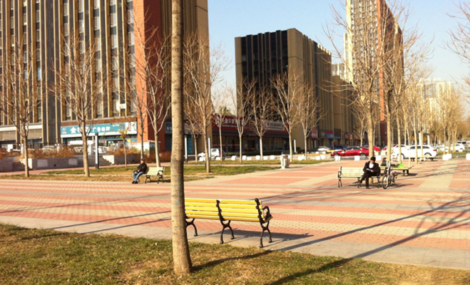 也許是波普公社剛建成的原因,小區(qū)的綠化還未成形,從目前的狀況來看,樹木和綠地都剛剛植入,應(yīng)該要經(jīng)過一段時(shí)間的培育之后,才能達(dá)到綠化的效果。
