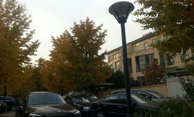 恩濟里小區(qū)內無地下停車場,一部分車輛停靠在制定位置(地面標有車牌號)另一部分則直接停靠在路邊,擠占了部分消防通道的位置。而且在西門電子通知牌附近以及六一小學門口(小學在社區(qū)之內)綠植由于長時間無人打理已經顯得十分雜亂,其中還充斥著雜草。