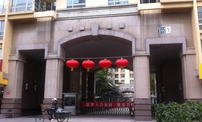 在小區門口位置有身著制服的安保人員值班,但是沒有阻擋社會人員進入的門禁系統。根據記者觀察,很多業主與保安已經熟識進出過程中多點頭示意或偶打招呼。
