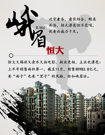 恒大 峨眉派 峨眉派攻守兼備,虛實結合,剛柔并濟,招式漂亮但不花哨。 恒大既搞副業,又攻主業,樣樣風生水起。年度銷售額新入圍千億俱樂部。要面子也要里子的風格,恰如峨眉派。