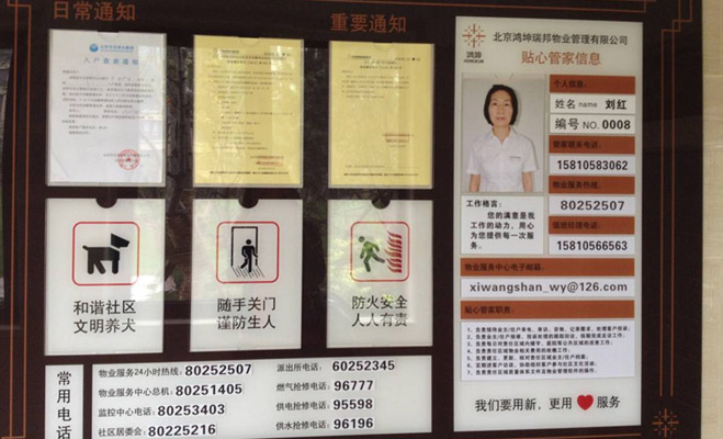 記者觀察到,小區各單元門內均設有公示欄,小區物業24小時服務熱線等基本信息公示明確,每單元配有“貼心管家”,聯系方式等信息發布十分清晰。時值供暖試水前后,小區內還貼有相關的溫馨提示。