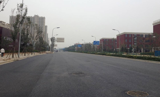 在西紅門地區,鴻坤地產的知名度較高,宣傳logo也遍布多條主要馬路。記者到訪時為工作日下午,鴻坤曦望山小區北側的馬路正在鋪柏油馬路。