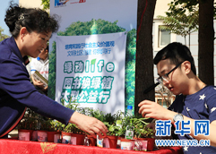 海口的圖書換綠植活動,由新華房產??谡韭摵袭數厣鐣ぷ鞣照竟餐e辦。 4月21、22日活動預熱,在??谳^大的商業區新華城張貼海報,進行微博、微信的活動宣傳推送,4月23日活動落地在京華城開展,現場進行“圖書換綠植”的活動,并將所得圖書捐贈于海南星海社會工作服務站。 |