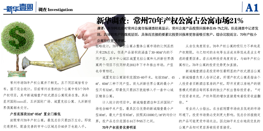 新華調查:常州70年產權公寓占公寓市場21%