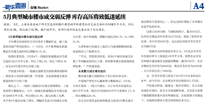5月典型城市樓市成交弱反彈