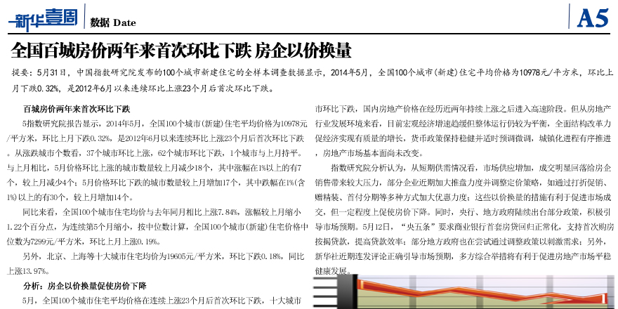 全國百城房價兩年來首次環比下跌