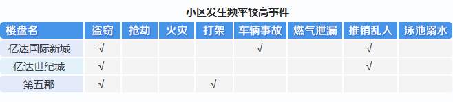 然而,綜合各項宜居指數(shù)來看,億達(dá)旗下的三個項目中有不同程度的盜竊、車輛事故及推銷亂入等安全事件發(fā)生,部分業(yè)主表示這些方面尚有改善空間。