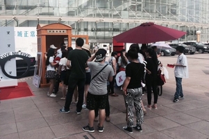 西安路夢想話吧前,"道夢"隊伍自覺排列 |