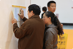 展會不乏誠意購房者仔細(xì)研究各樓盤報價 |