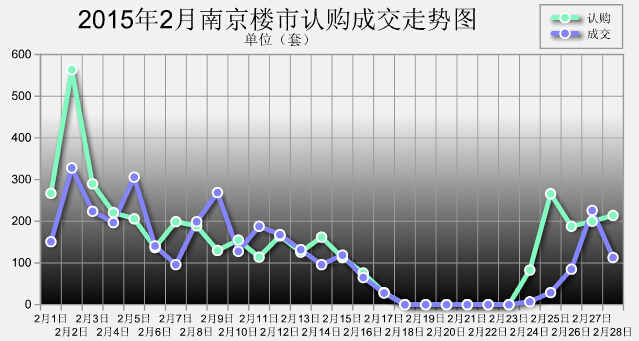 2月的南京樓市整體來看并無太大起伏,多數開發商坦言已經開始收回年前部分優惠,接下來將全力沖刺“金三銀四”。 新華房產記者統計發現,2015年價環比微漲0.12%。截止到2月28日,南京網上房地產數據顯示,2月南京樓市新房認購4094套、成交3295套,日均賣房146套。環比上月認購量下跌4成,成交量下跌近5成。