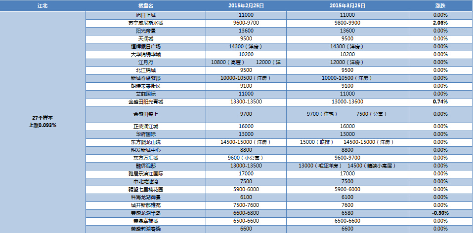 新華房產對南京八大板塊在售的80余家樓盤進行了房價漲跌統計,結果發現,3月,南京房價環比微漲0.174%。 [詳細]