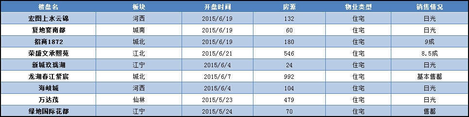 近期南京樓市開盤情況一覽