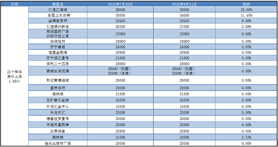 不同于以往的溫和,今年8月,南京樓市一反傳統淡季常態,量價猛增。樓盤跳價1000-2000元/平方米已經成為市場常態,甚至有個別樓盤房價猛漲7000元/平方米。據新華房產統計發現,2015年8月南京樓市八大板塊中,房價環比微漲0.82%。 [詳細]
