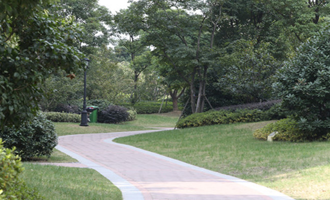 小區內綠化布置以生態、綠色為先導,充分利用其樓間距的距離,形成縱深交錯,層層合圍的平面布局。一路走來,花卉植物、雕像噴泉、卵石路徑,滿目皆是。