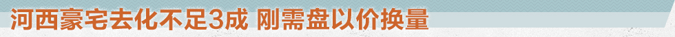 房價飛漲的河西板塊現在終于冷靜了。買不到的“神盤”——海峽城現如今讓購房者有了挑選的余地;純新盤五礦崇文金城即便以低于預期1500元/平方米的價格入市,去化也僅有8成;豪宅代表華潤悅府門前更是冷清,開盤一個半月去化不足3成。